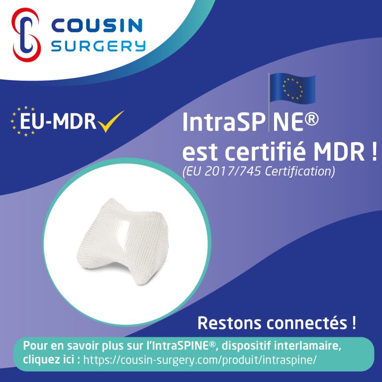 Cousin Surgery est fier d’annoncer une nouvelle étape importante : la certification MDR (Medical Device Regulation – EU 2017/745) pour notre dispositif interépineux IntraSPINE !