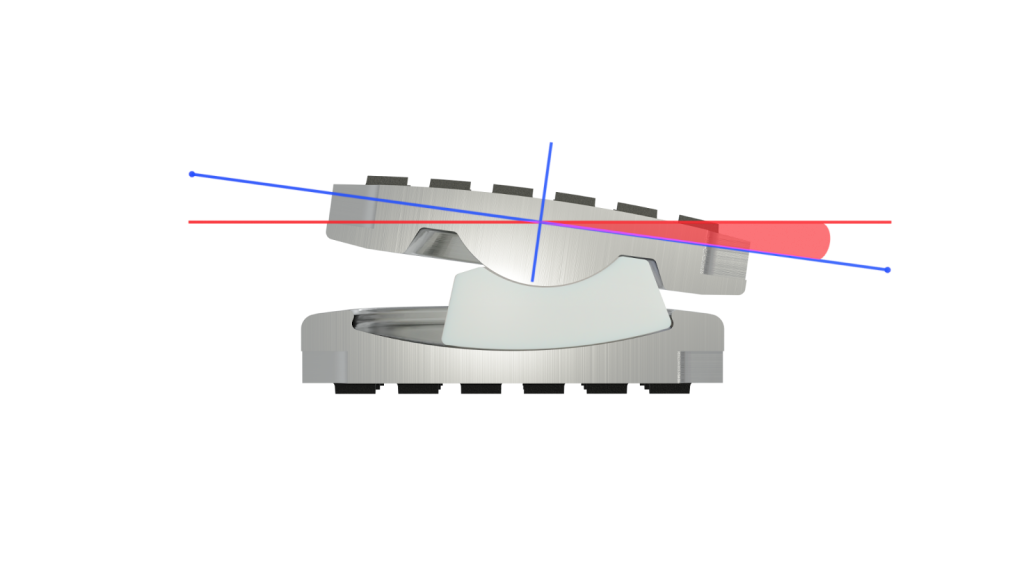 La conception de l’implant intègre un double centre de rotation qui assure un auto-centrage optimal de la prothèse et limite les mouvements excessifs.