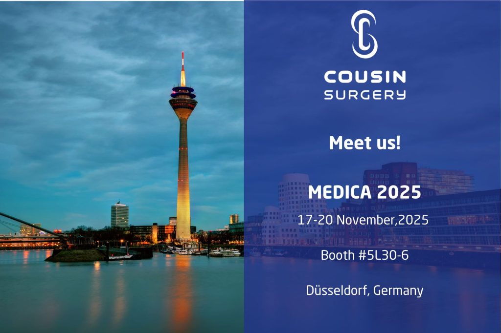 Cousin Surgery participera à MEDICA 2025, du 17 au 20 novembre Düsseldorf. 📍 Notez le dans votre agenda et rejoignez-nous à MEDICA ! Nous avons hâte de vous y rencontrer ! Rendez-nous visite au stand 5L30-6 pour rencontrer notre équipe et discuter de futures collaborations. Contacts : n.carton@cousin-surgery.com – p.pilet@cousin-surgery.com
